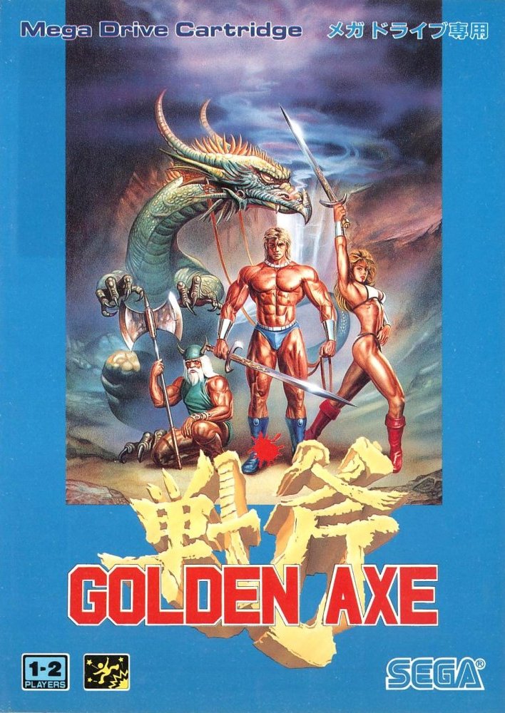 I got my Sega Genesis with Sonic The Hedgehog and a few other titles, including a used copy of Altered Beasts. I didn't get Golden Axe till the end of the 90s. My version had the standard 1989 North American cover. I never really researched the games release history until last year. I was extremely surprised to see just how sexy and revealing the Japanese and European box art was. In the scan I found of the Mega Drive version, the speedo donned by AXE BATTLER clearly shows the characters dick head. It's so tight on him I would guess he's cut! :P LOL. I mean wow...if they had this cover here, I would have probably asked my parents for a Genesis in 1989! XD Later images I found make the effect less apparent. Of course I am sure this is just due to the resolution of the scan I found. Still, even the scan of the Japanese version seems to give the impression his dick is visible.